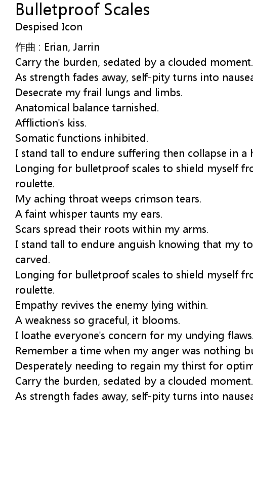 | Longing for bulletproof scales to shield myself from the next round of Russian roulette. | |