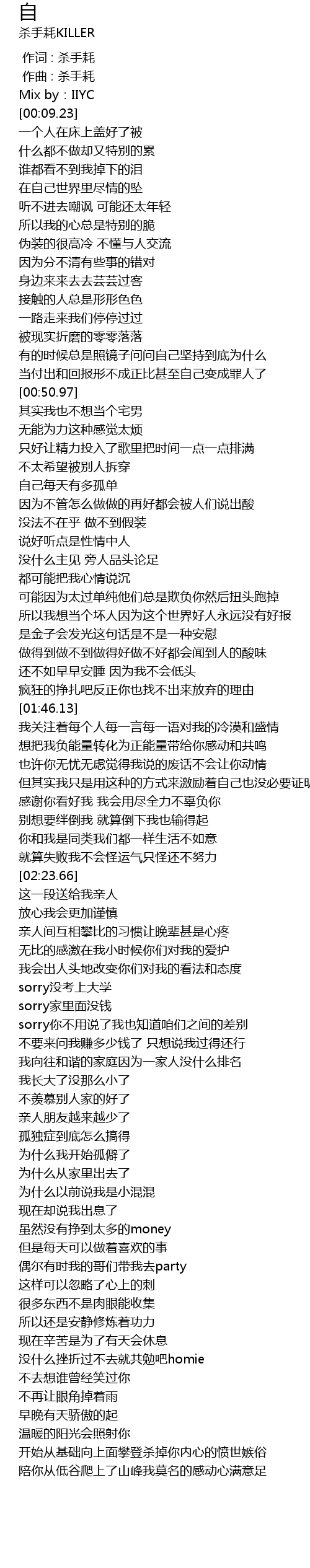 | [00:00.000] | zuò cí : shā shǒu hào |