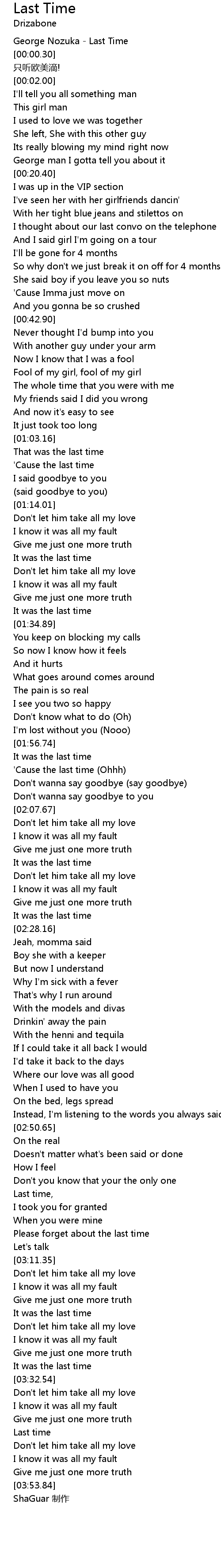 | [00:00.00] | George Nozuka - Last Time |