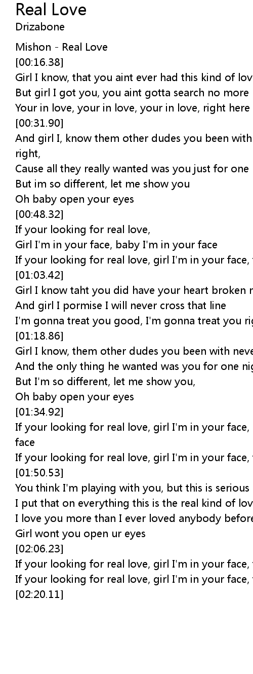 [01:43.89] If your looking for real love, girl I'm in your face, face