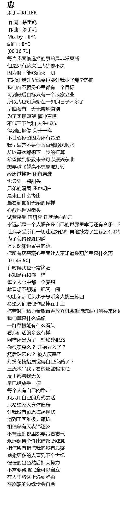 | [00:01.000] | 作曲 : 杀手耗 |