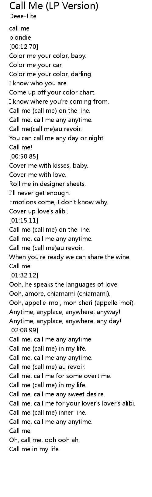 Call me, call me any anytime |