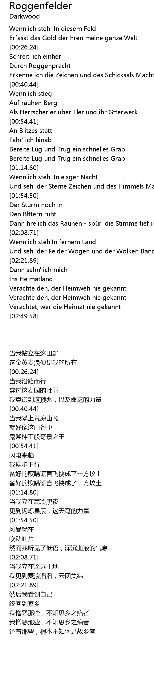 | [00:14.60] | Wenn ich steh' In diesem Feld |