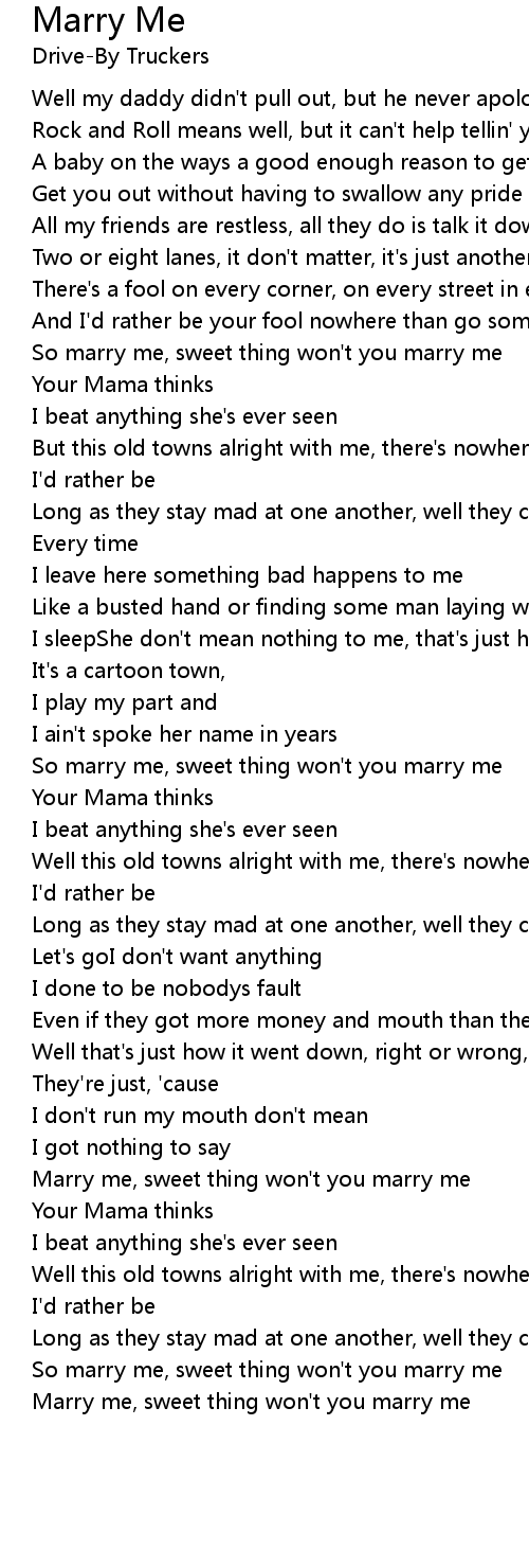 Marry me, sweet thing won't you marry me |