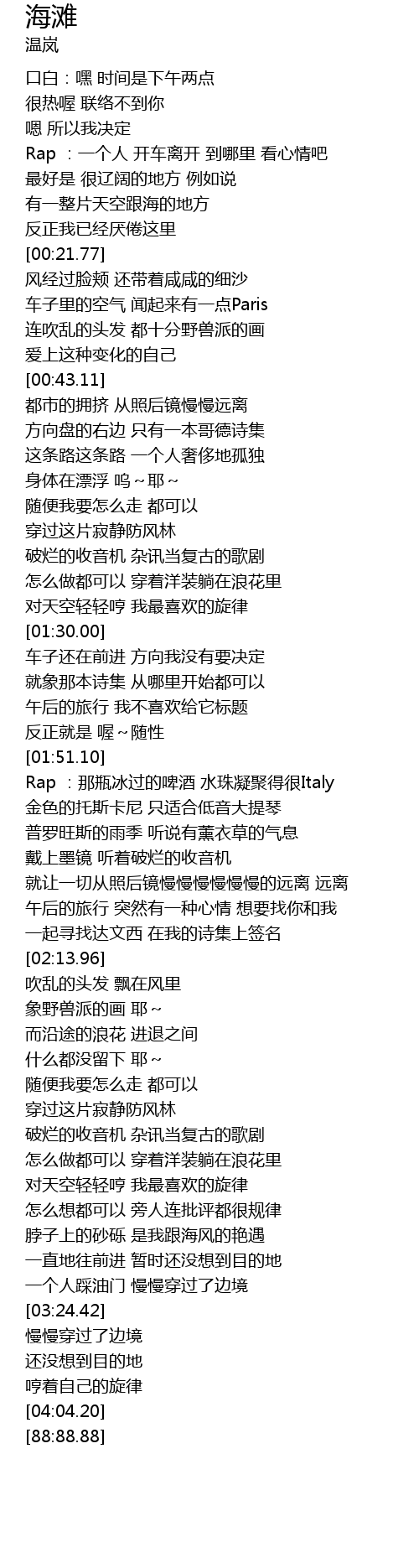 | [03:06.36] | 脖子上的砂砾 是我跟海风的艳遇 |