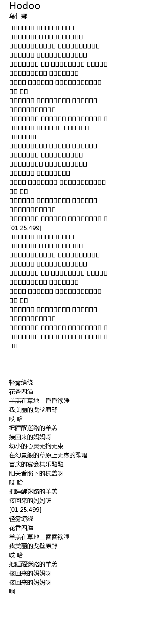 | [01:39.001] | 羊羔在草地上昏昏欲睡 |