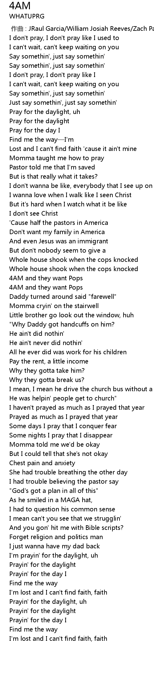 | [03:20.45] | Prayin' for the daylight, uh |