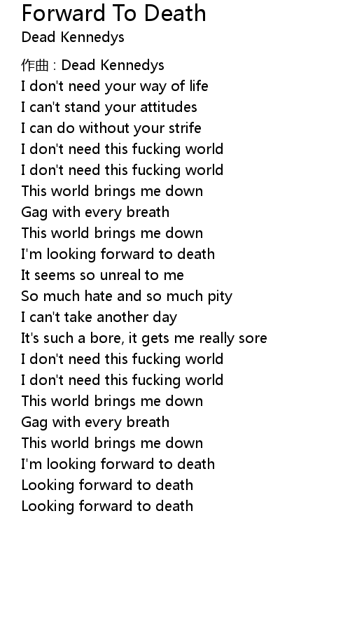 | I' m looking forward to death | |