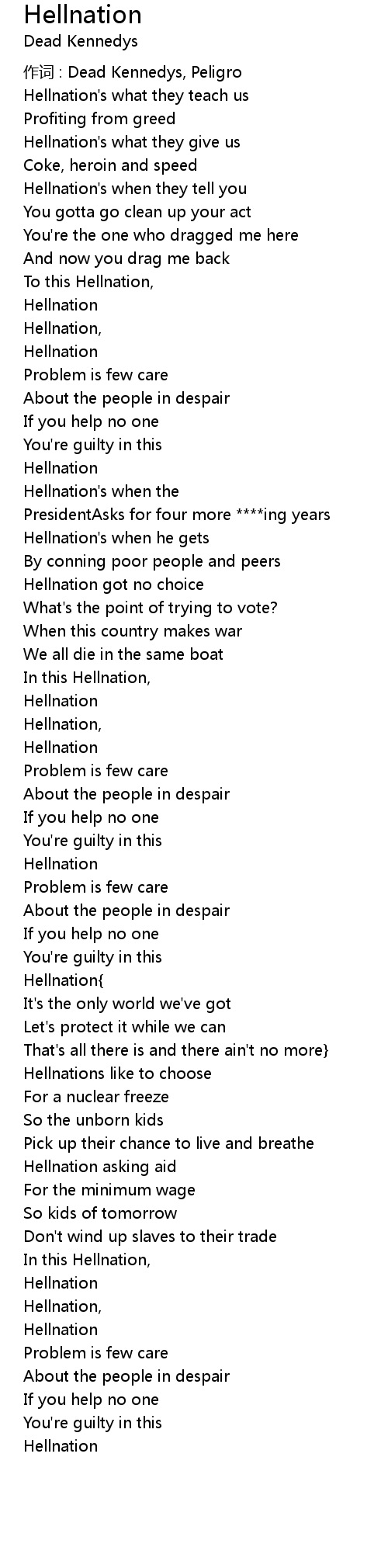 | Hellnation' s what they give us | |