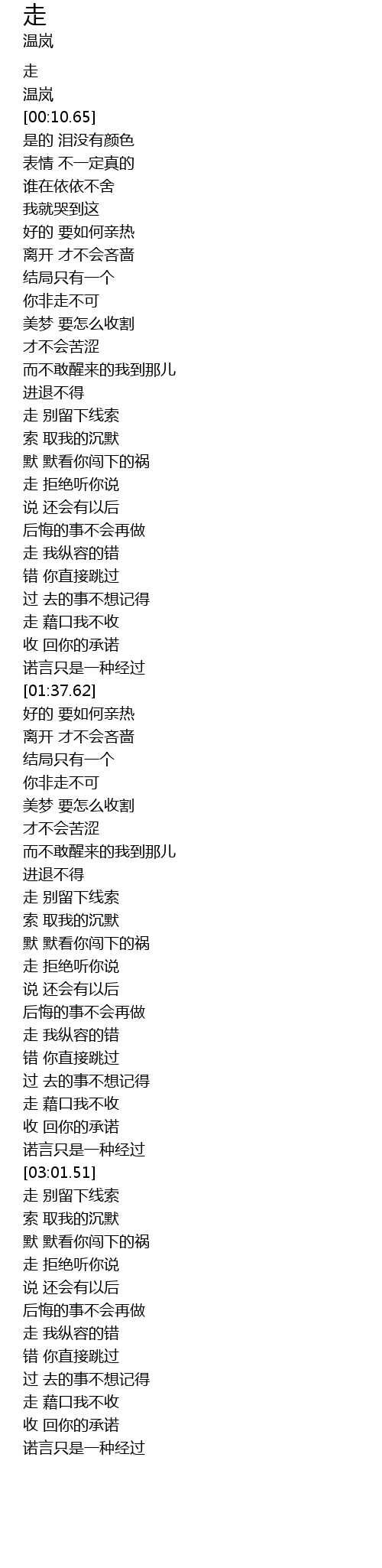 | [03:20.31] | zǒu bié liú xià xiàn suǒ |