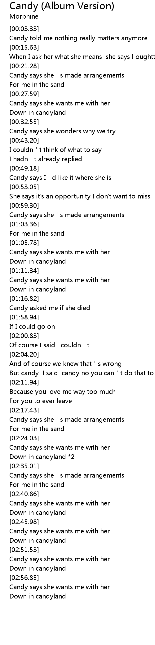 | [02:07.32] | But candy I said candy no you can t do that to me |