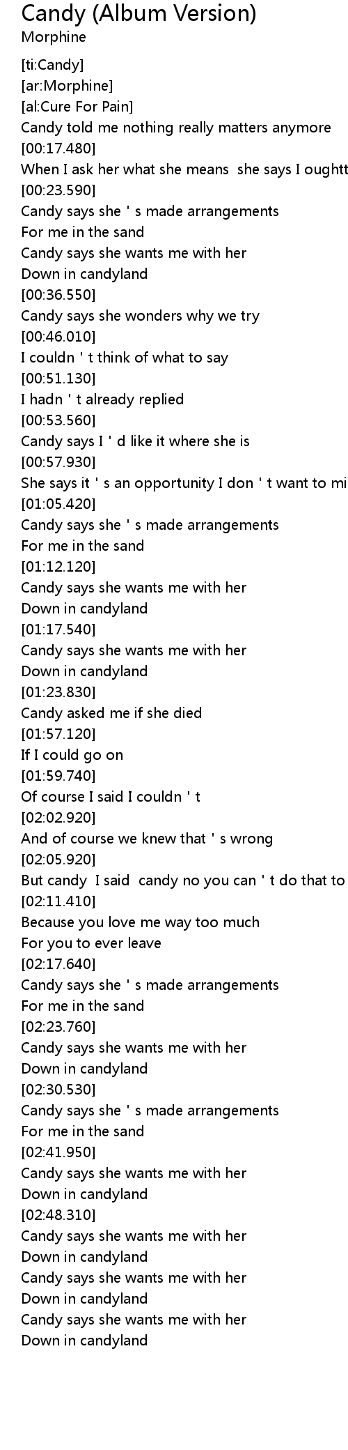 | [02:49.000] | Candy says she wants me with her |