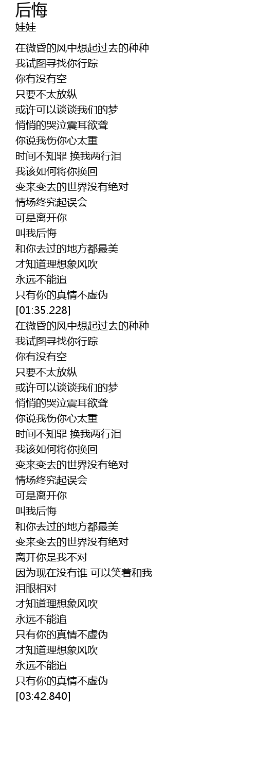 | [03:31.490] | 只有你的真情不虚伪 |