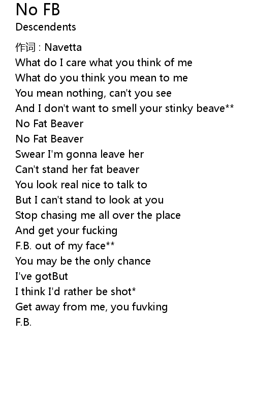 | And I don' t want to smell your stinky beave | |
