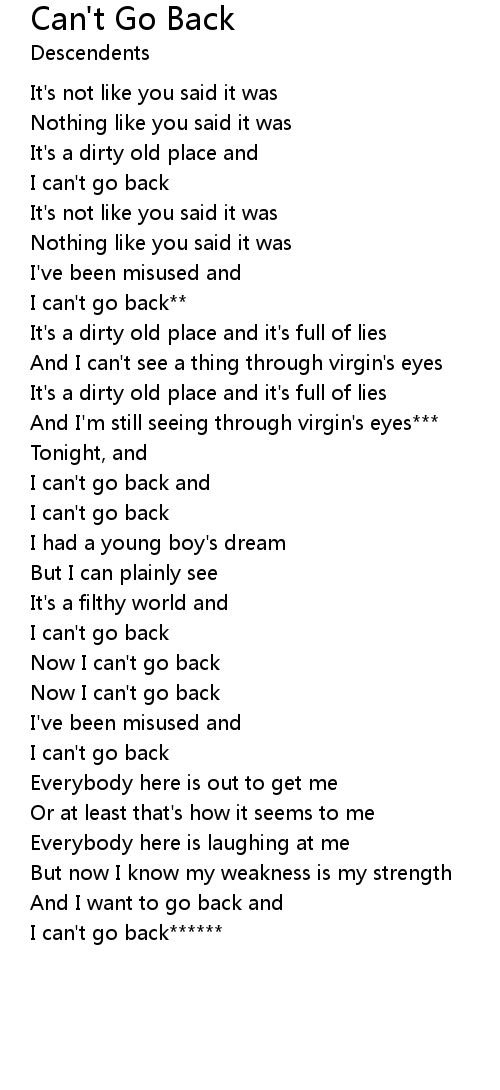 I can't go back** |