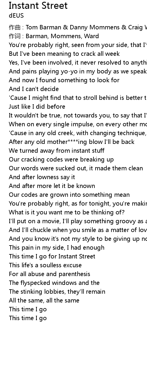 | zuò qǔ : Tom Barman Danny Mommens Craig Ward | |