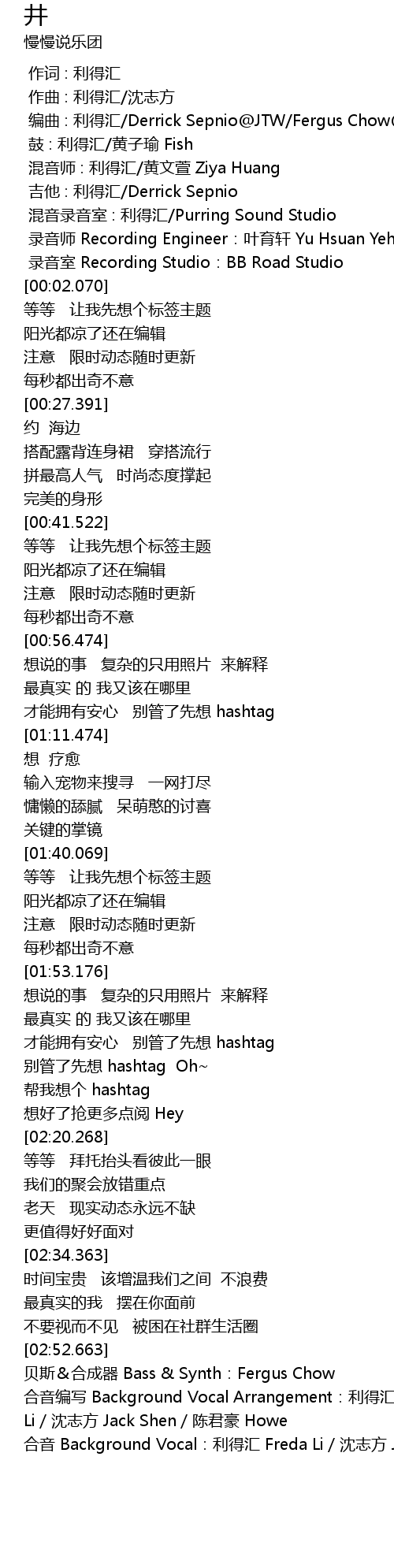 | [02:09.534] | 别管了先想 hashtag Oh~ |
