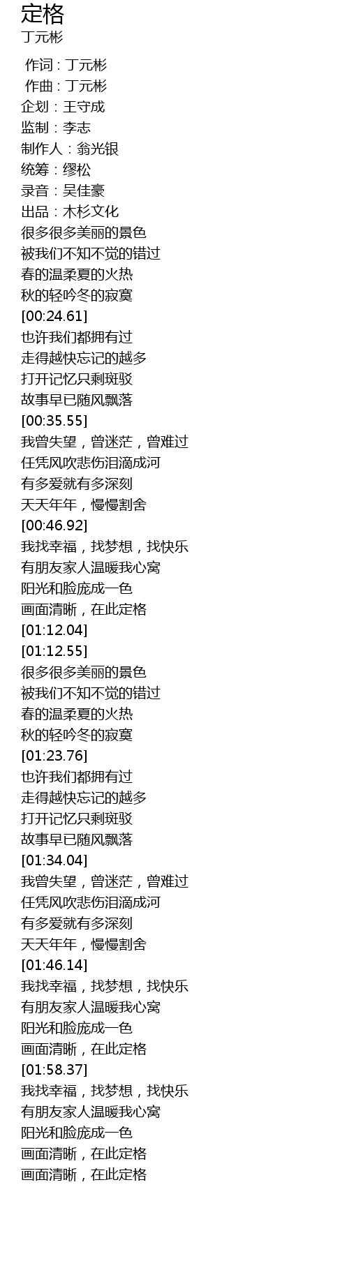 | [00:00.000] | 作词 : 丁元彬 |