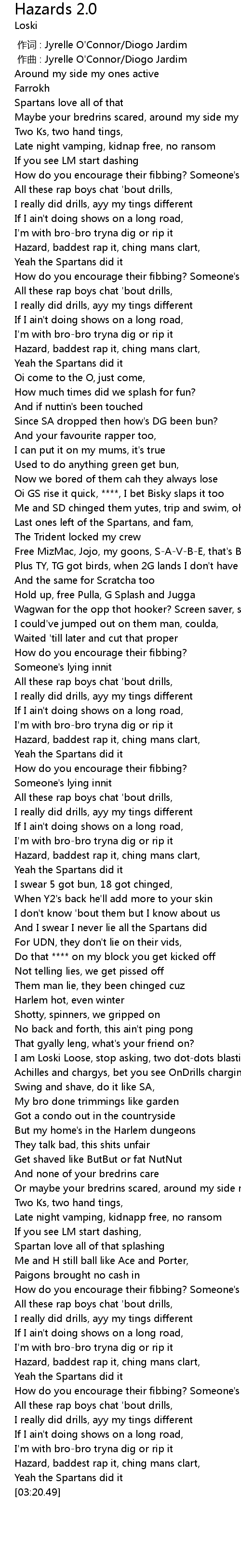 | [02:21.49] | I am Loski Loose, stop asking, two dot-dots blasting |