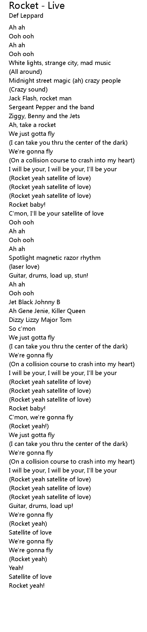 (Rocket yeah satellite of love) |
