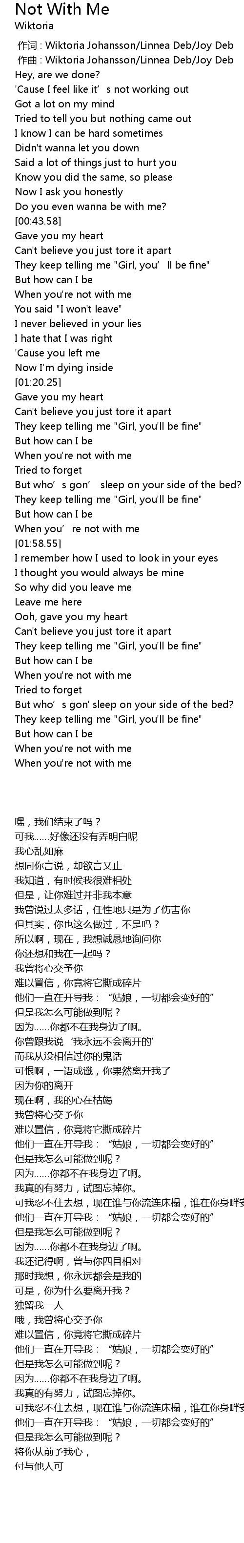 | [00:00.000] | zuo ci : Wiktoria Johansson Linnea Deb Joy Deb |