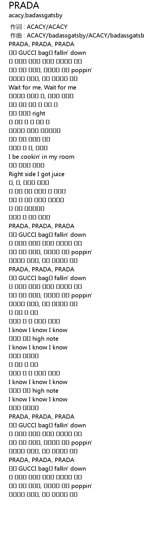 | [02:00.147] | PRADA, PRADA, PRADA |
