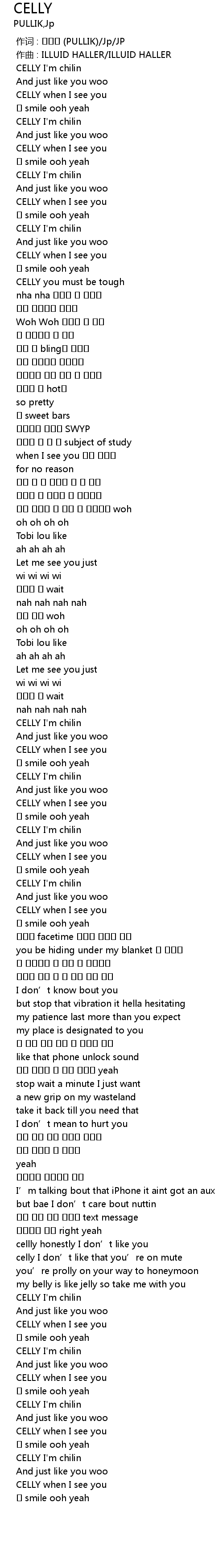 | [00:15.881] | CELLY I' m chilin |