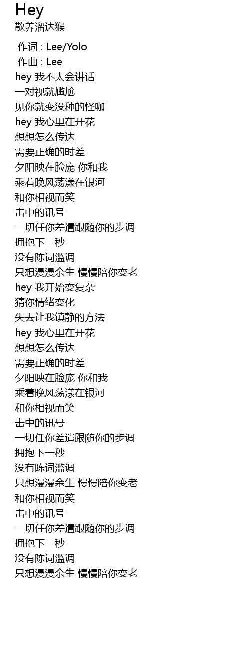| [00:19.974] | hey wǒ bù tài huì jiǎng huà |