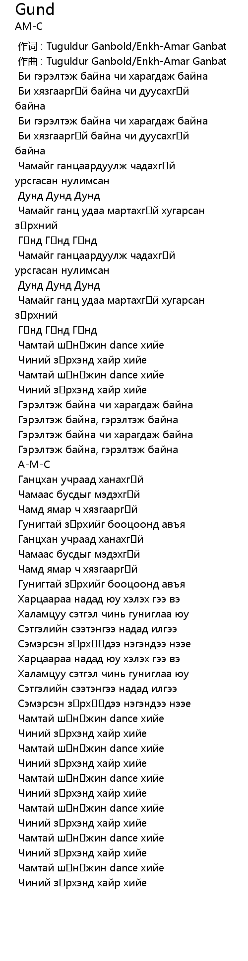 作词 : Tuguldur Ganbold/Enkh-Amar Ganbat |
