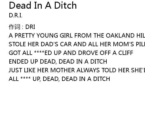 | ENDED UP DEAD, DEAD IN A DITCH | |