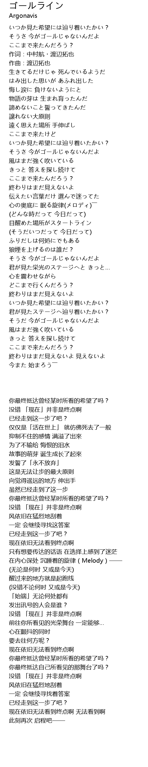 | [03:19.58] | 现在依旧无法看到终点啊 无法看到啊 |