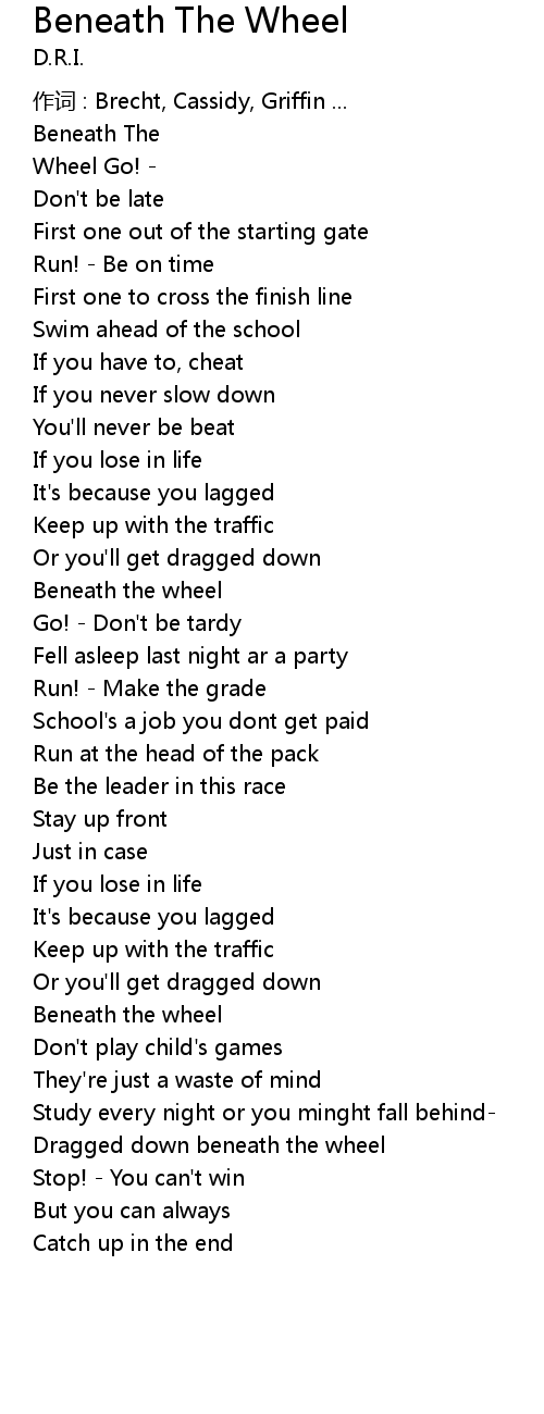 | Dragged down beneath the wheel | |
