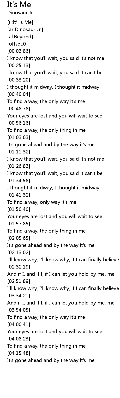 | [01:22.72] | I know that you' ll wait, you said it' s not me |
