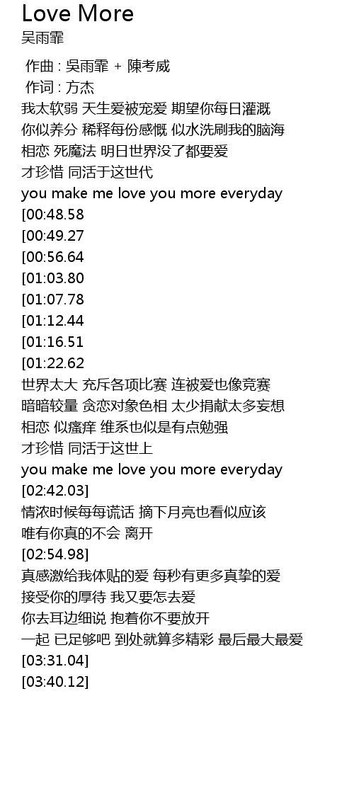 | [02:03.92] | you make me love you more everyday |