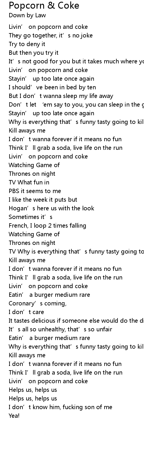 | Livin' on popcorn and coke | |