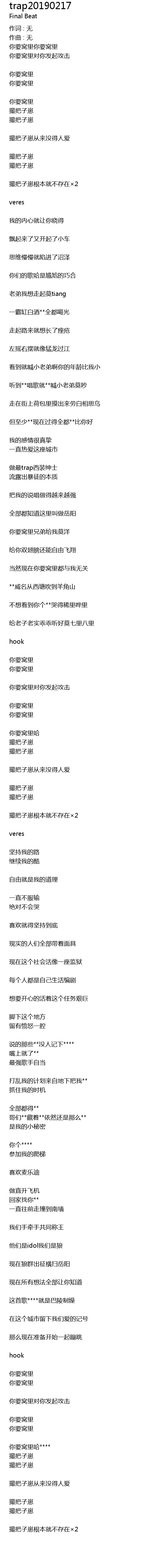 | 歌曲 | trap20190217 |