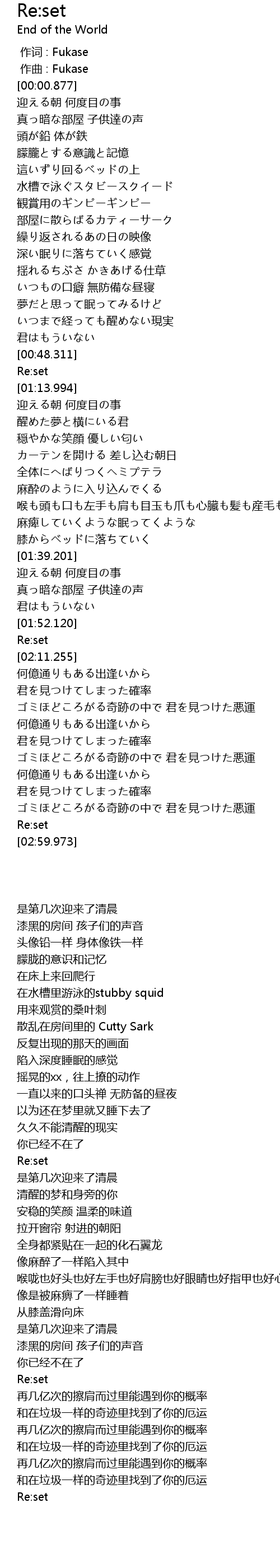 | [00:00.000] | 作词 : Fukase |