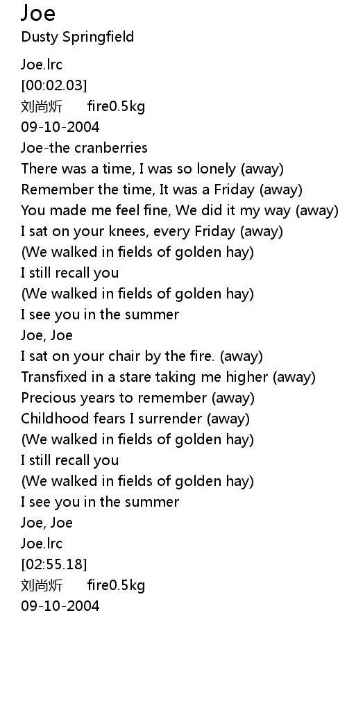 | [00:52.22] | I sat on your knees, every Friday (away) |