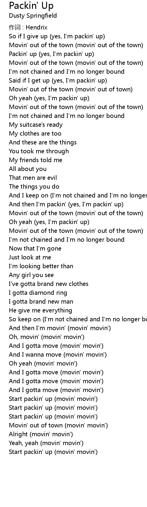 | Start packin' up movin' movin' | |