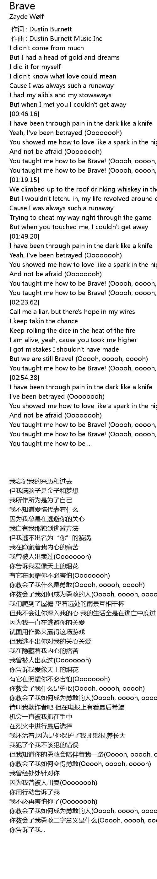 | [03:18.88] | You taught me how to be Brave! (Ooooh, ooooh, ooooh) |