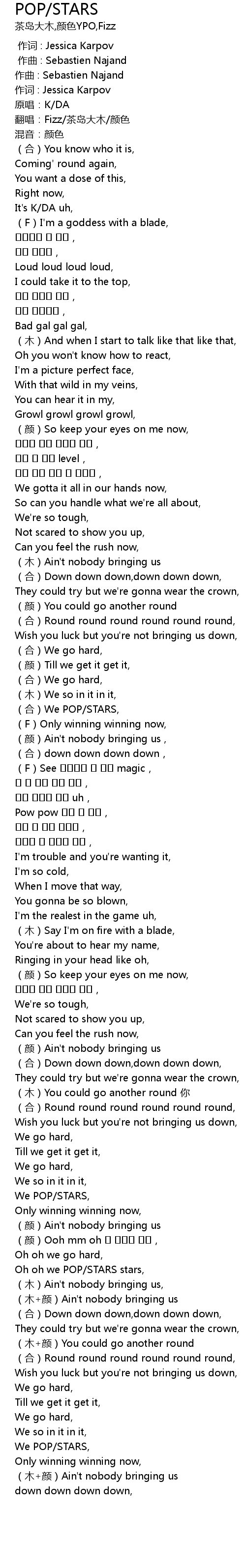 | [02:36.229] | Oh oh we POP/STARS stars, |