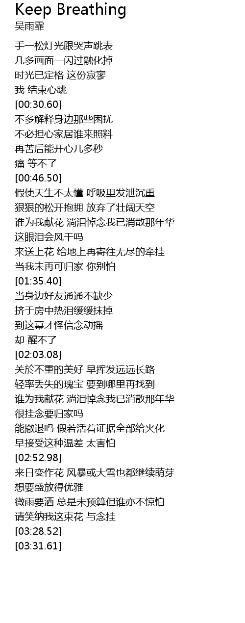 | 歌曲 | Keep Breathing |