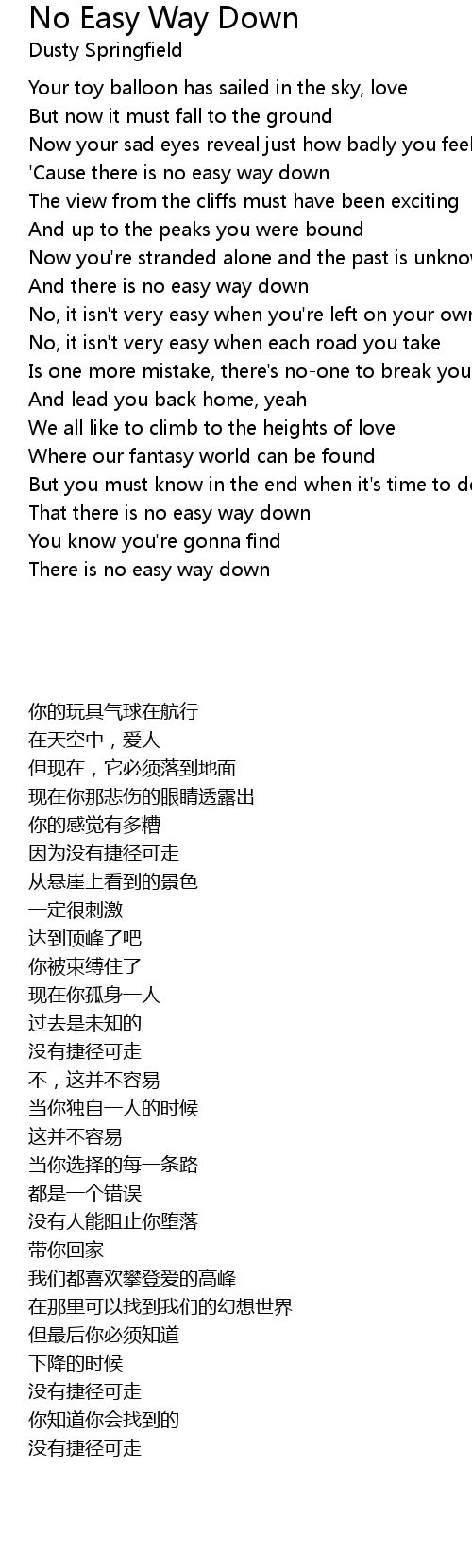 'Cause there is no easy way down |