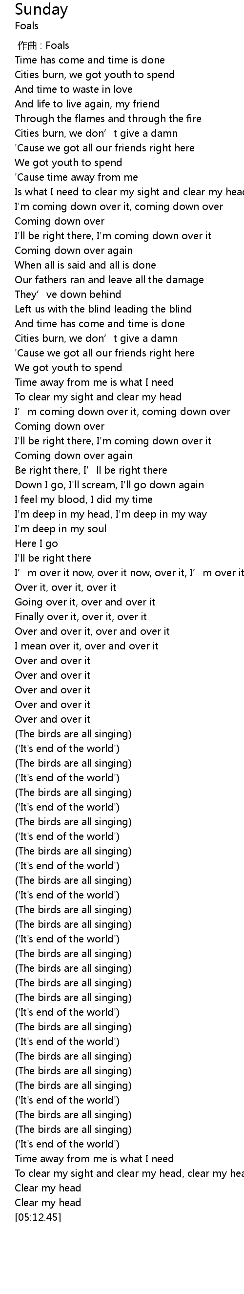 | [04:12.06] | (The birds are all singing) |