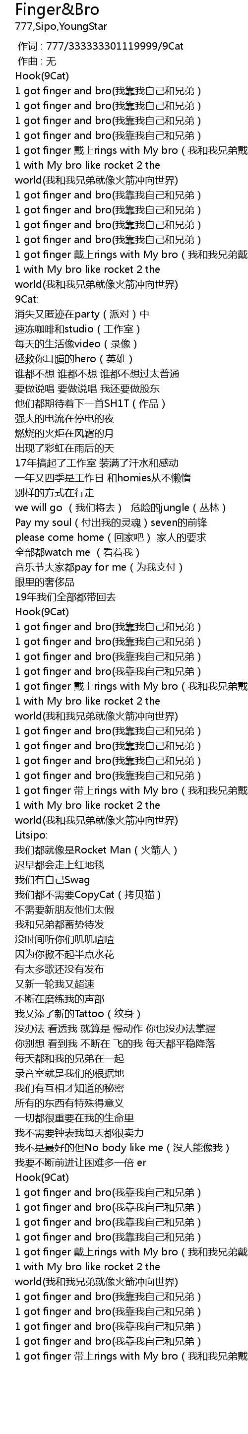 | [01:58.680] | 1 got finger and bro(我靠我自己和兄弟) |