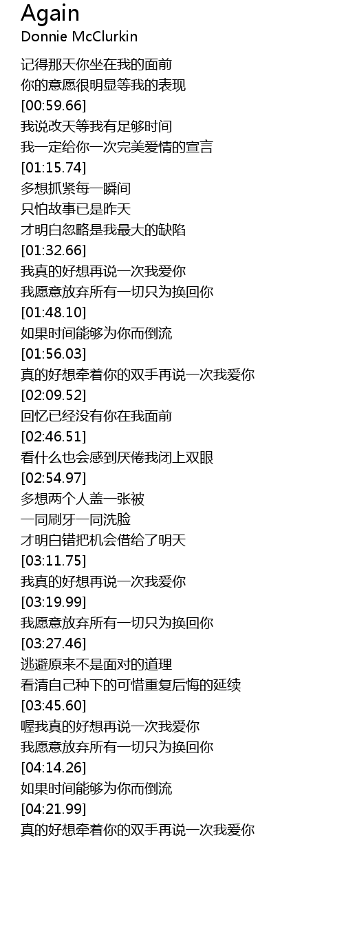 | [03:59.69] | 喔我真的好想再说一次我爱你 |