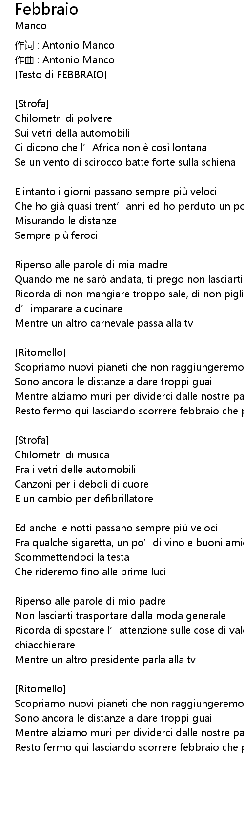 | 歌曲 | Febbraio |