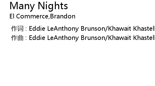 | [00:00.000] | 作曲 : Eddie LeAnthony Brunson/Khawait Khastellano/Brandon Dudley |