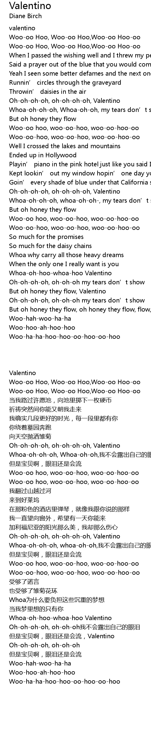 | [02:00.68] | Whoaohhoowhoahoo Valentino |