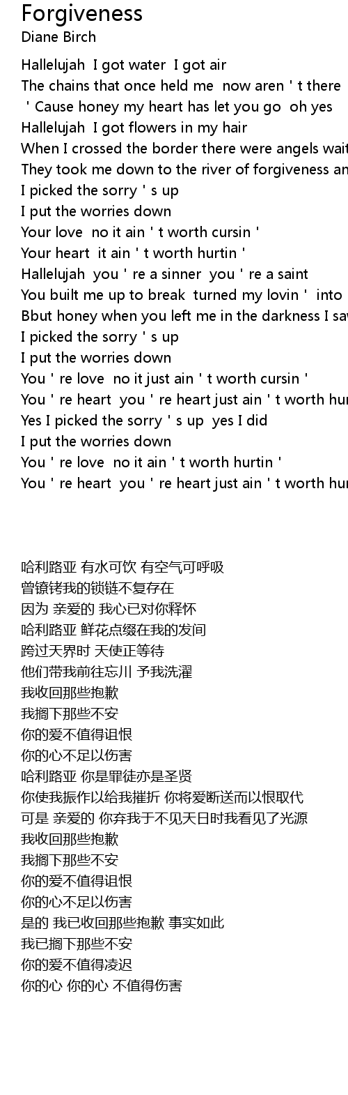 | [01:25.00] | They took me down to the river of forgiveness and washed me clean |